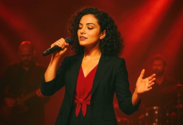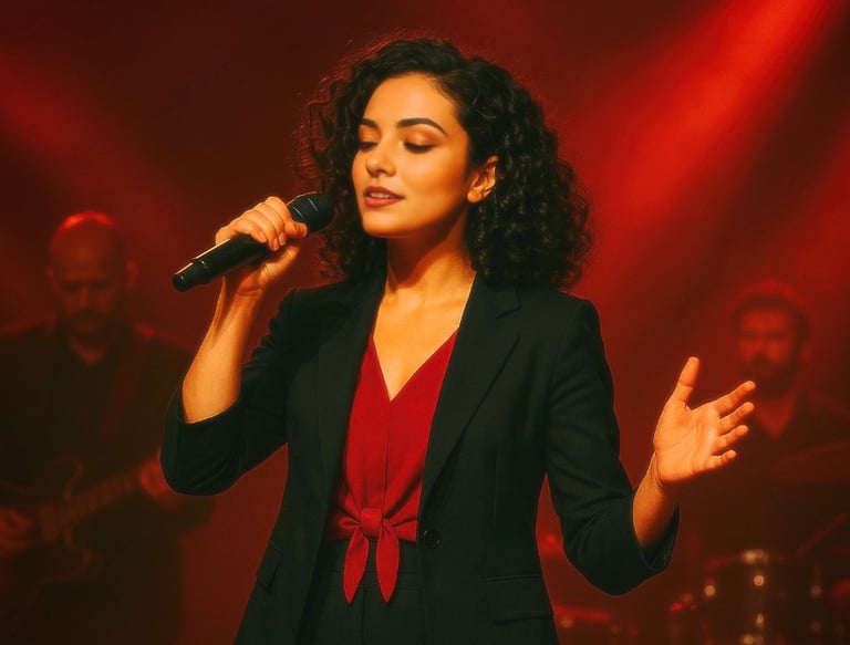 Mariângela Serra é uma cantora e atriz, com um estilo único que mistura MPB, samba, jazz e rock, encantando o público.